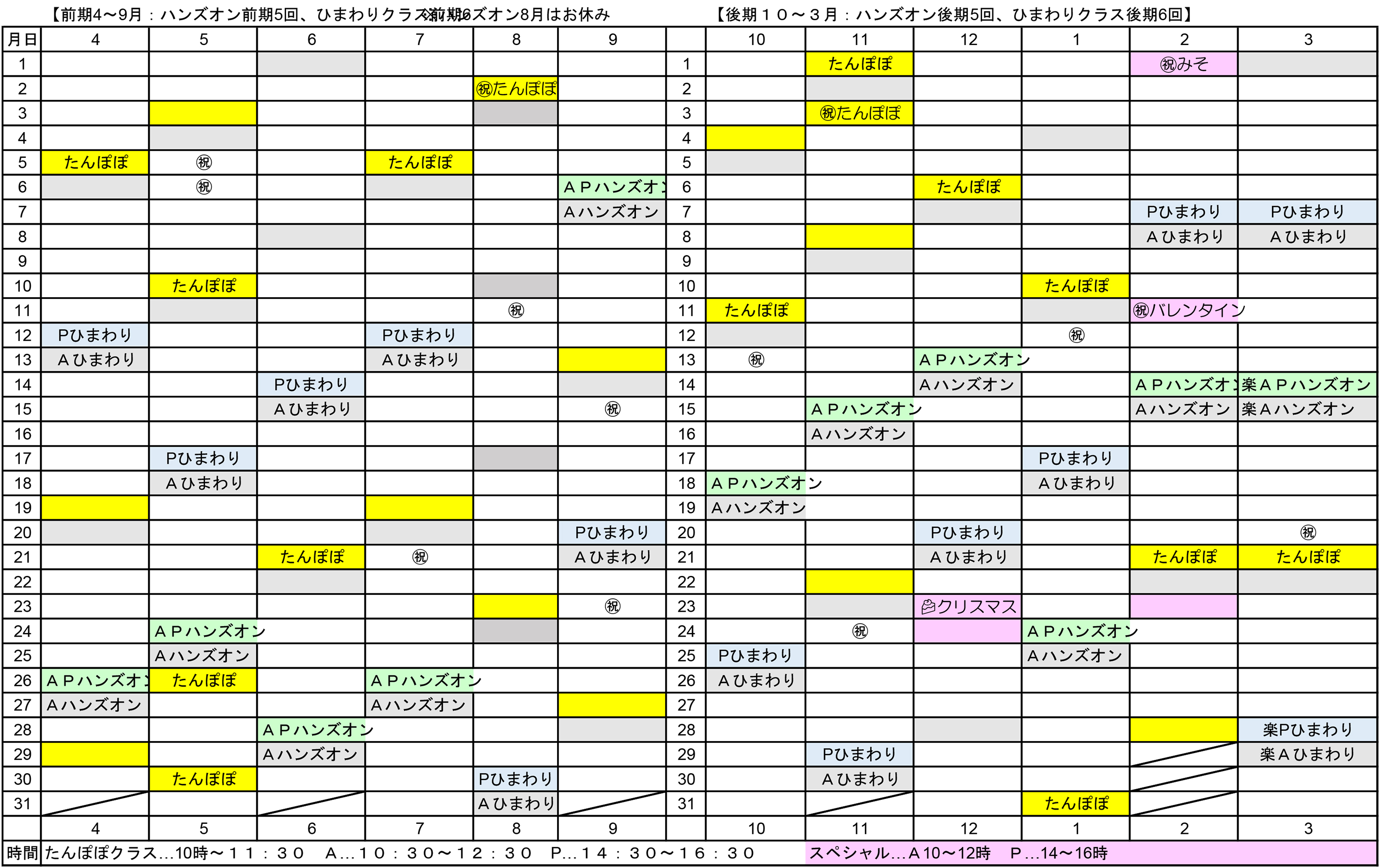 ひまわりクラス 4,500×6回=27,000円+年会費2,000円